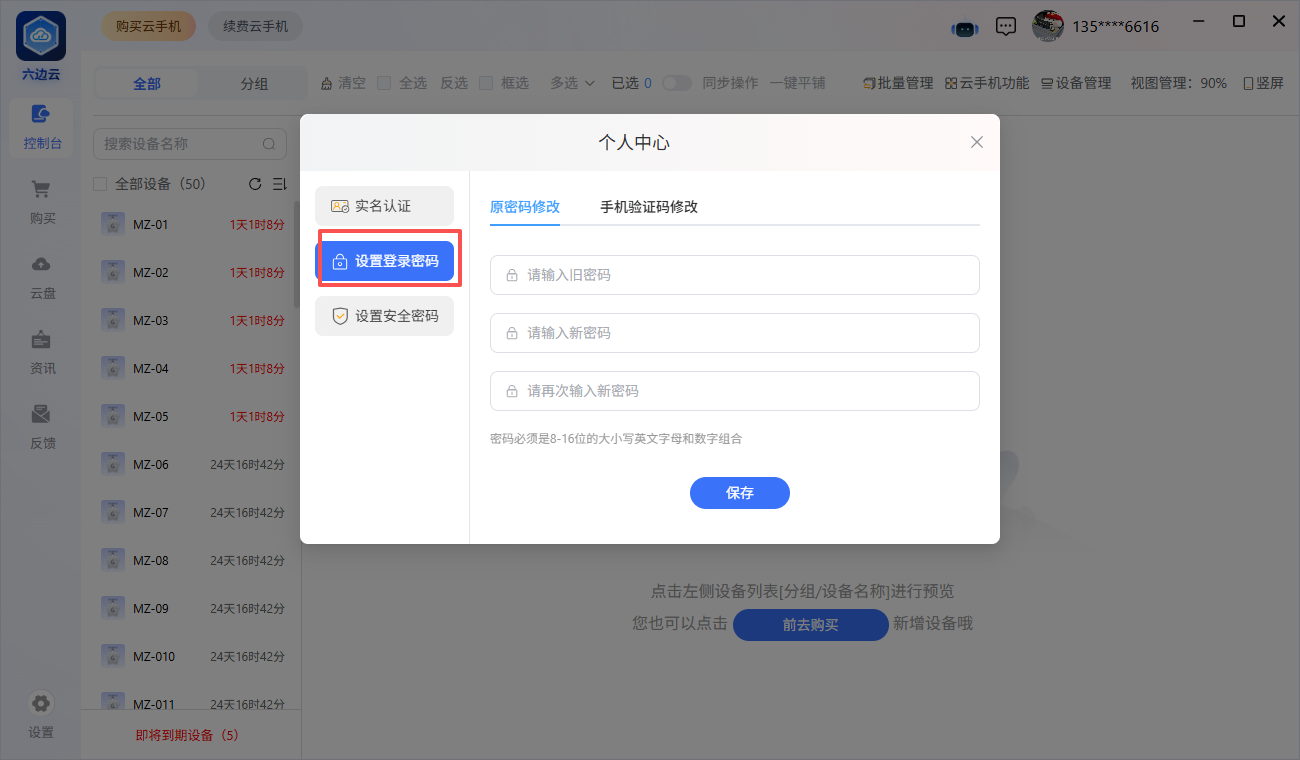 首次安装六边云手机APP需要注册登陆才可使用,六边云手机支持手机号码、账号ID密码等登录方式。