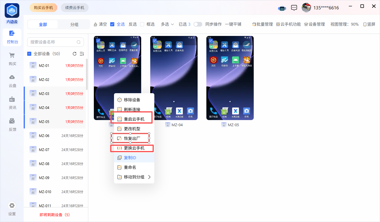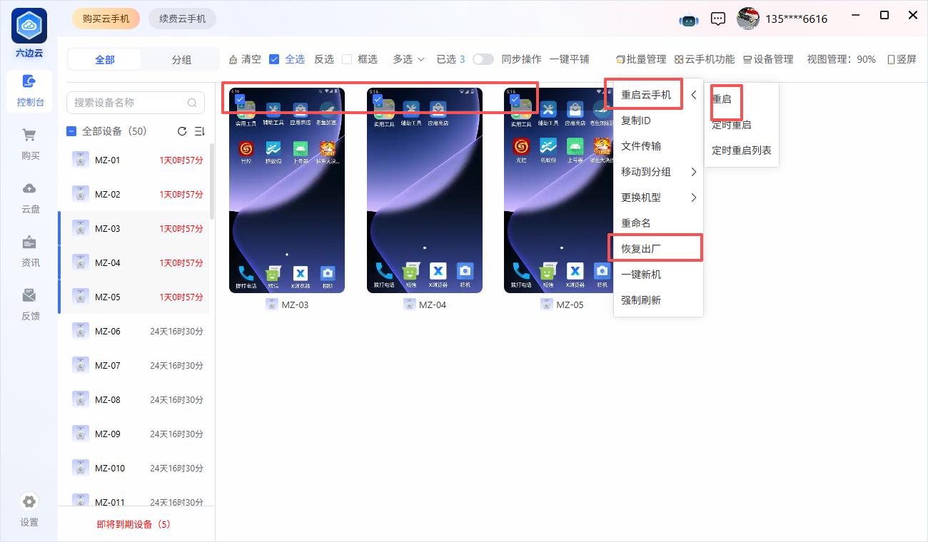 “云手机”如何重启,更换设备、恢复出厂?