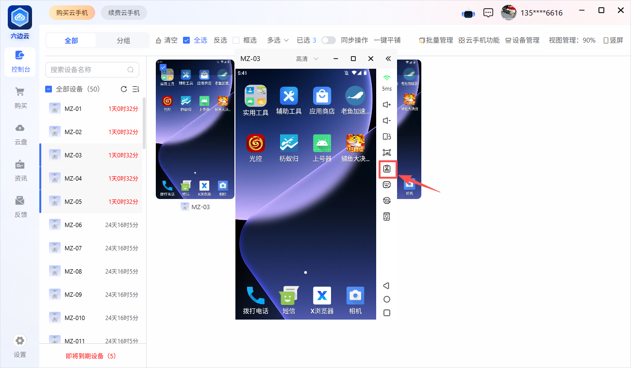 2. 云机外复制的内容想要粘贴进云机内,先将想要粘贴进云机的内容复制好,点进云机内,在云机右侧的导航栏中,点击一下“剪切板”即可将云机外复制的内容在改云机内使用